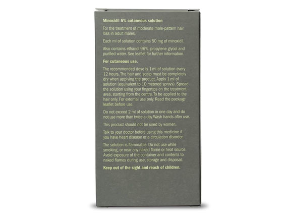 - Apply 1ml (10 sprays) of solution directly to the thinning areas of the scalp twice daily.